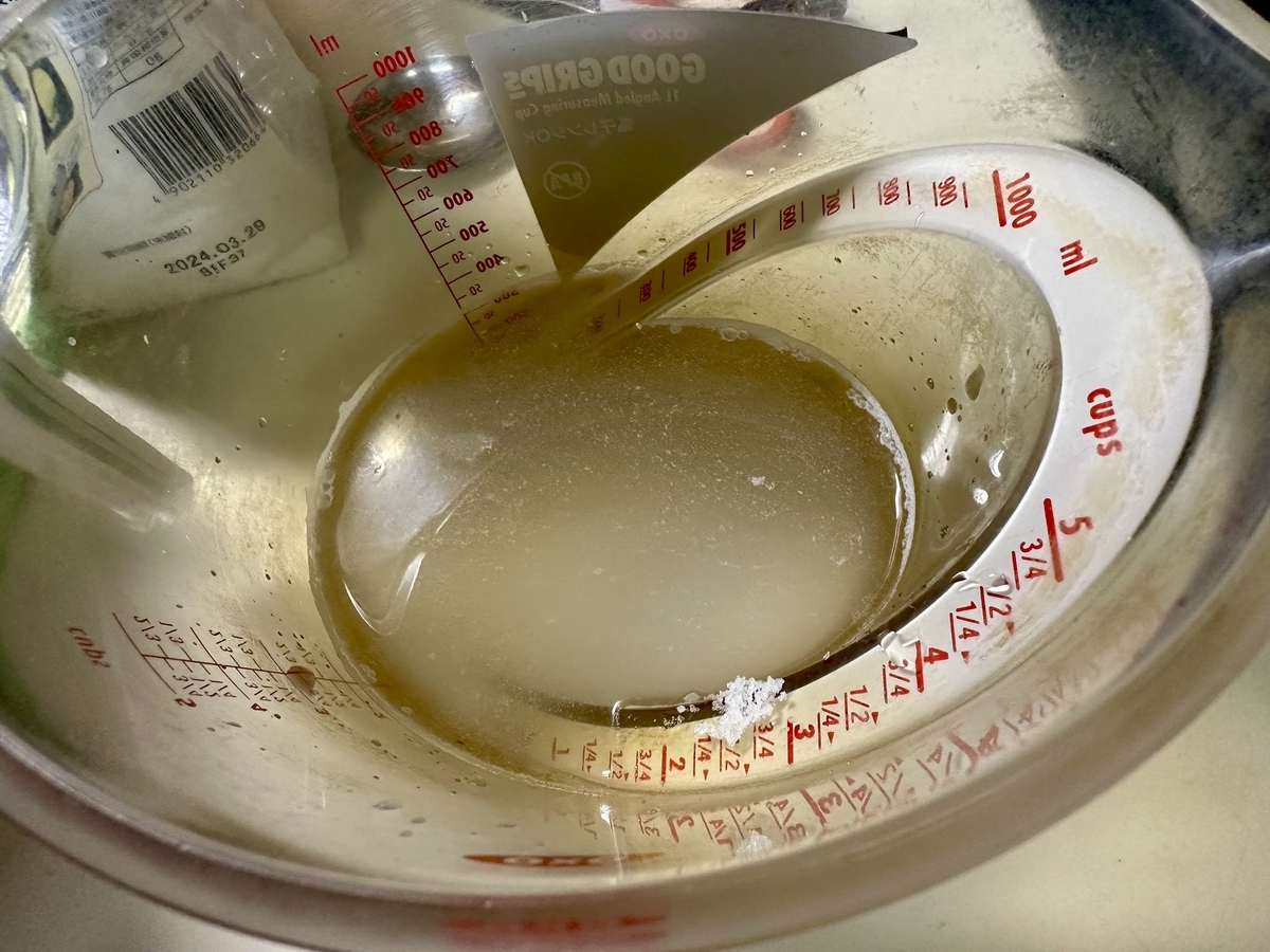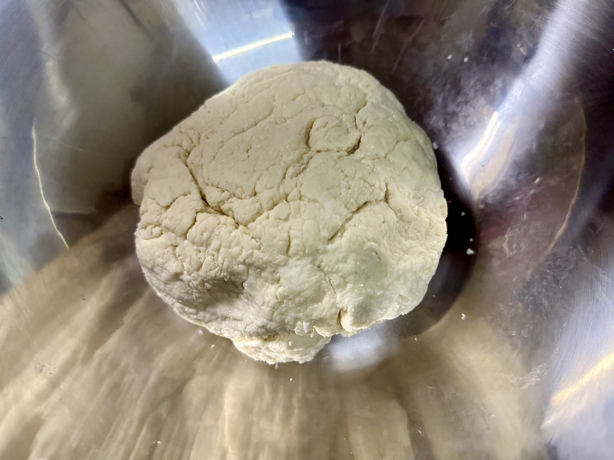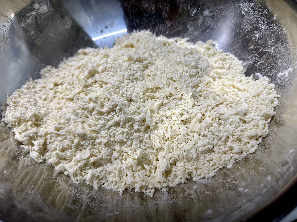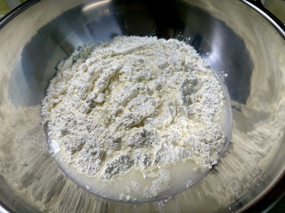 小麦粉に塩水2/3ぐらいをかけて、かきまわします。