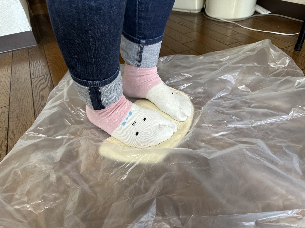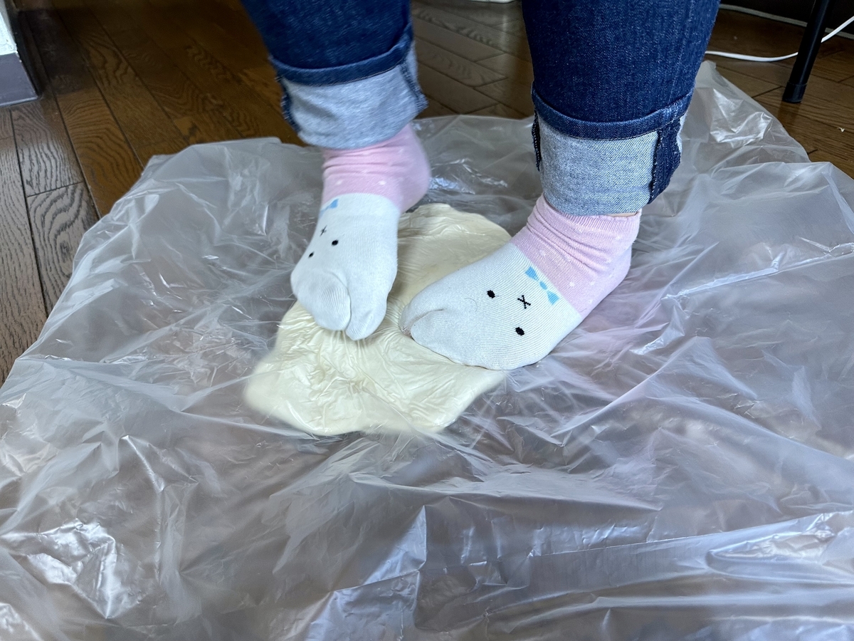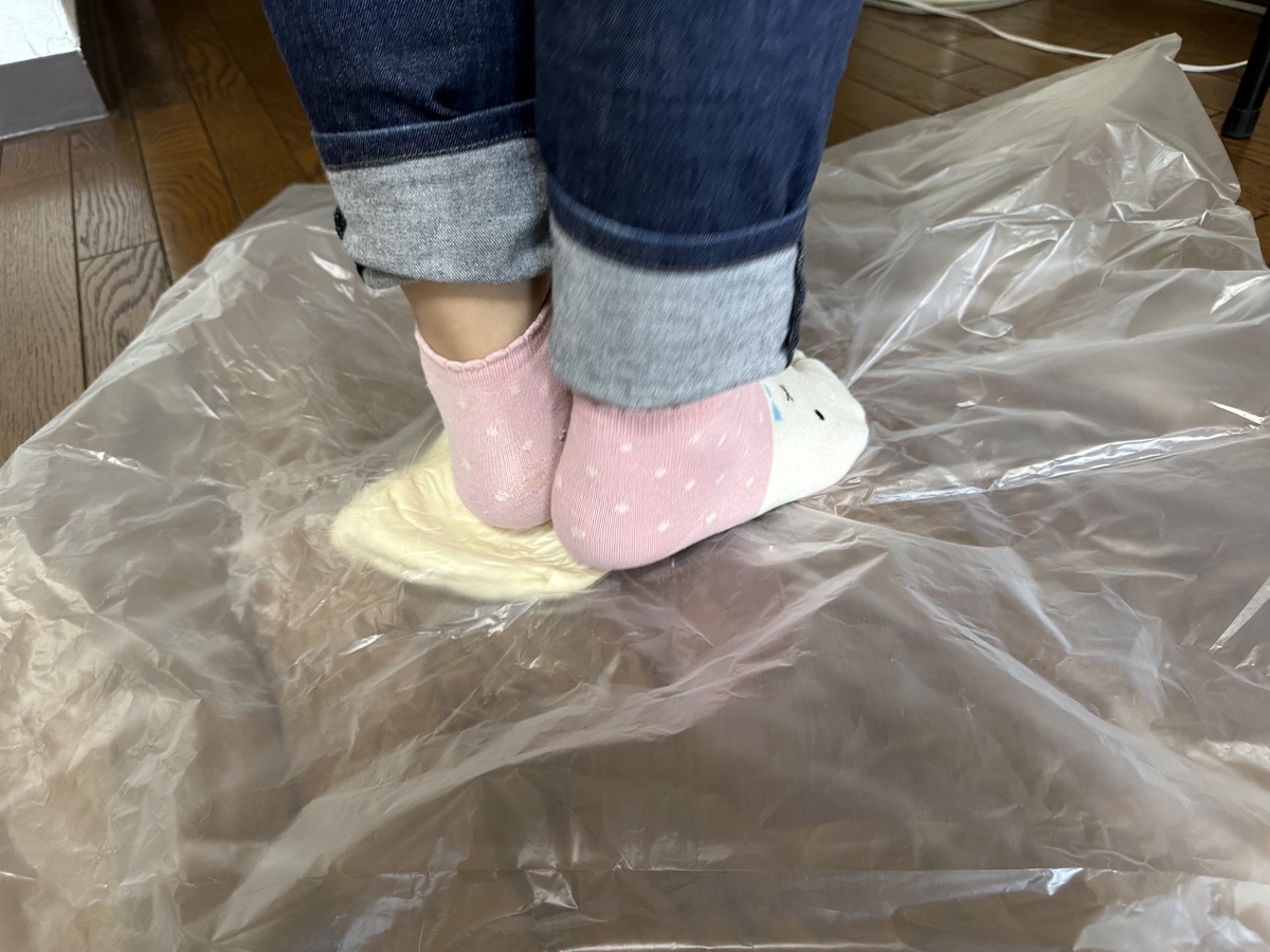 踏んでいくと、だんだん生地に弾力が出てきました。