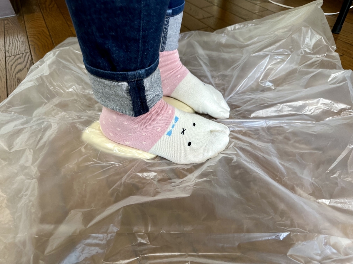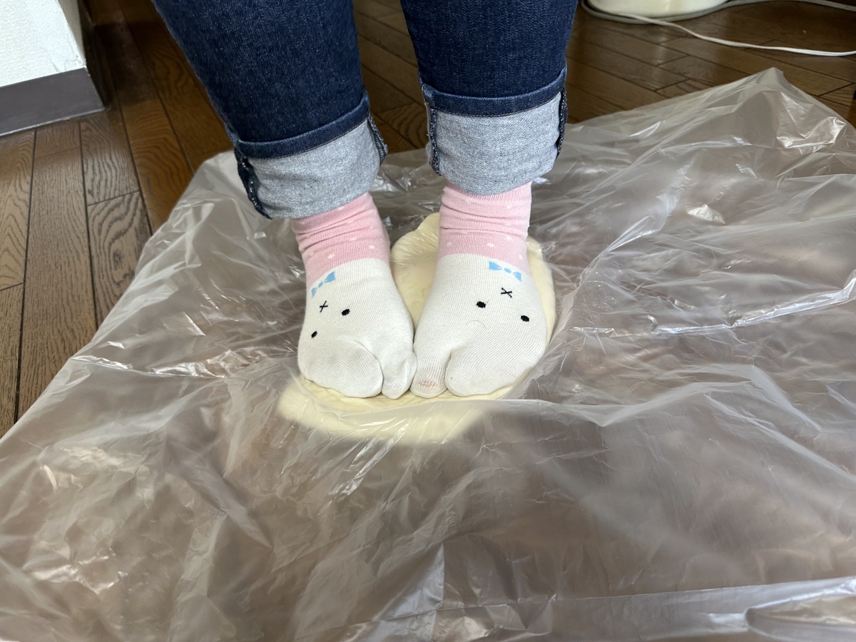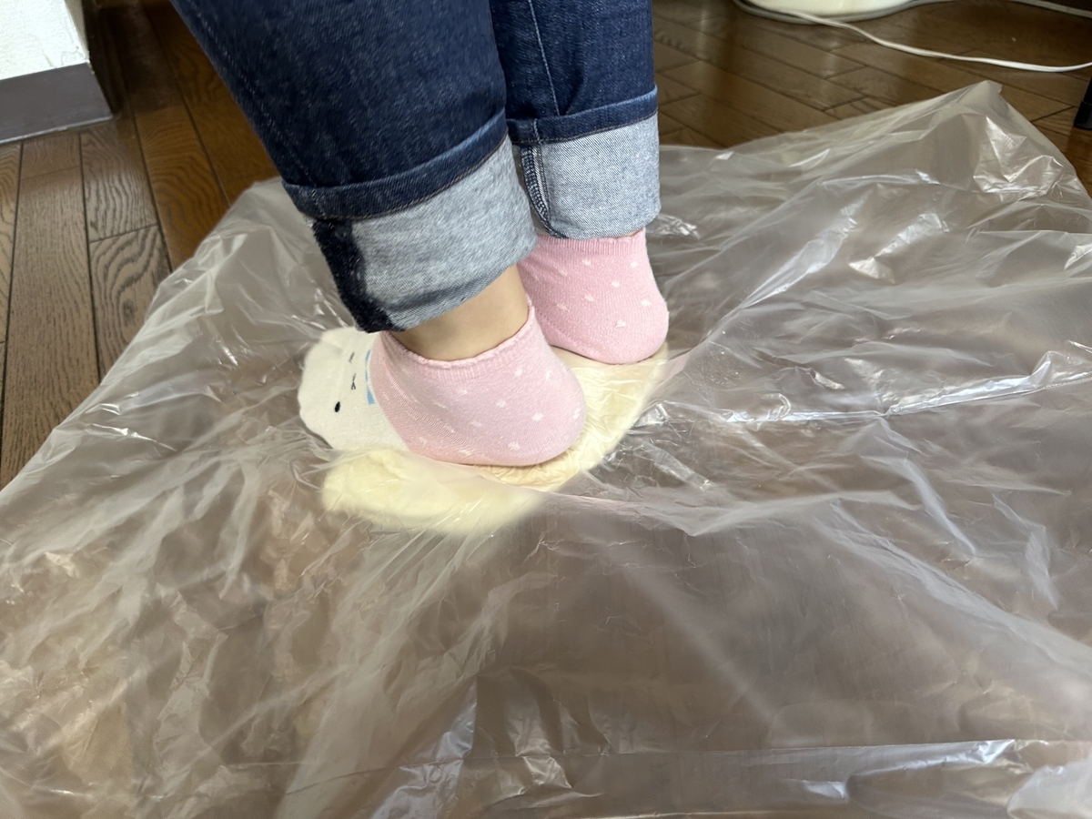 踏んでいくと、だんだん生地に弾力が出てきました。