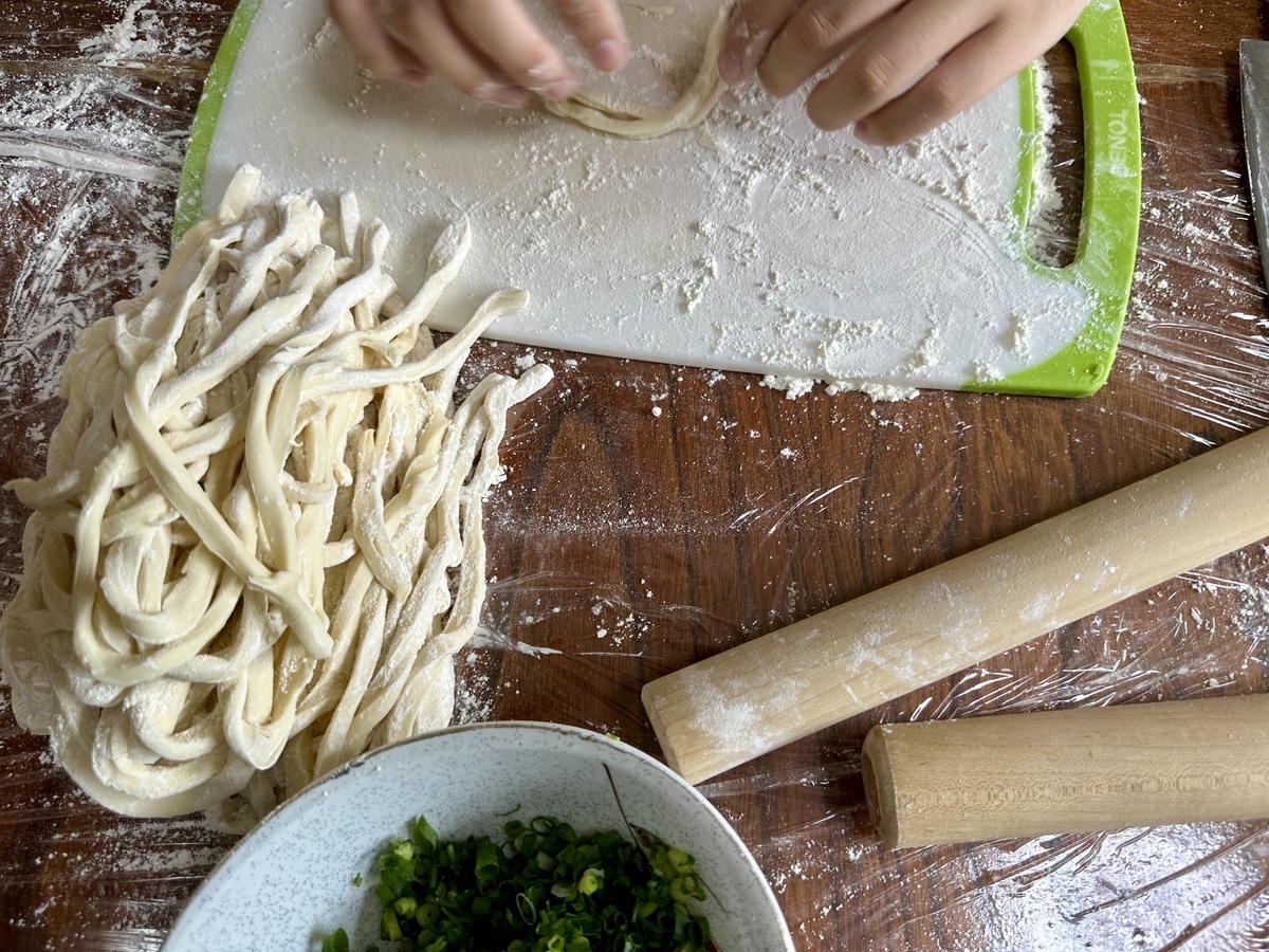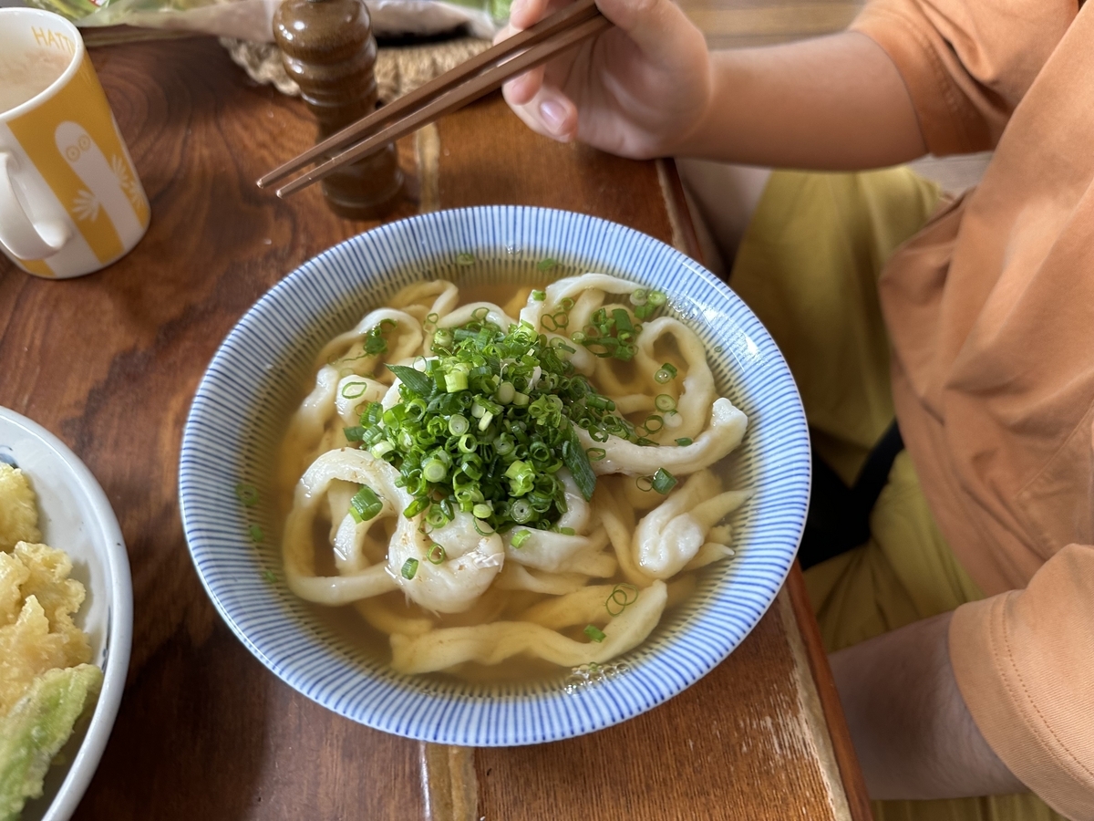 (実家の近くにあった手打ちうどん屋さんとそっくりの麺でした。)